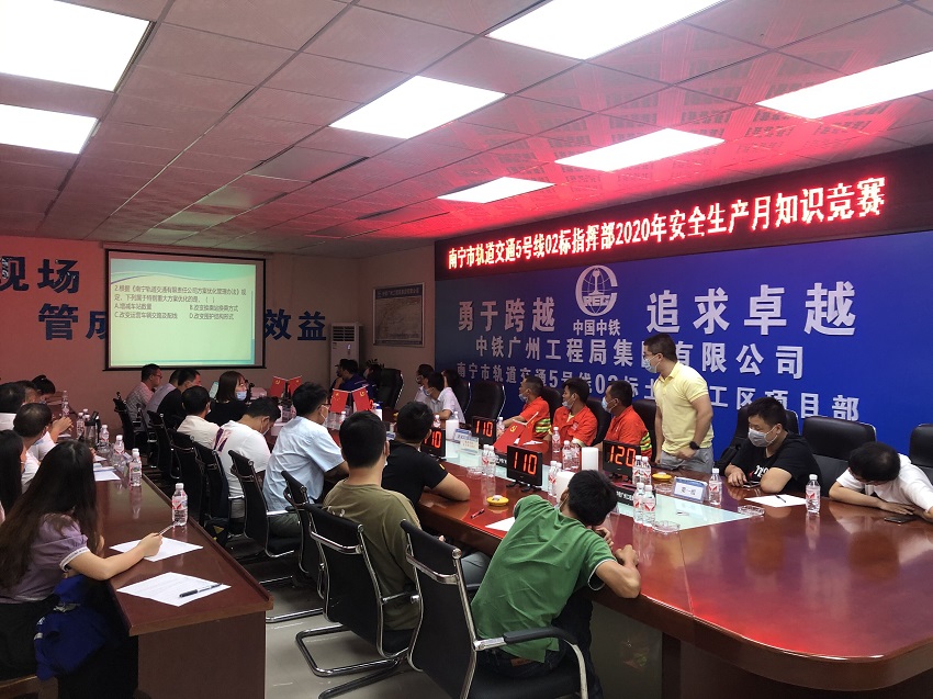 6月29日,南寧地鐵5號線02標指揮部組織各工區舉辦了“安全生產月知識競賽”活動。