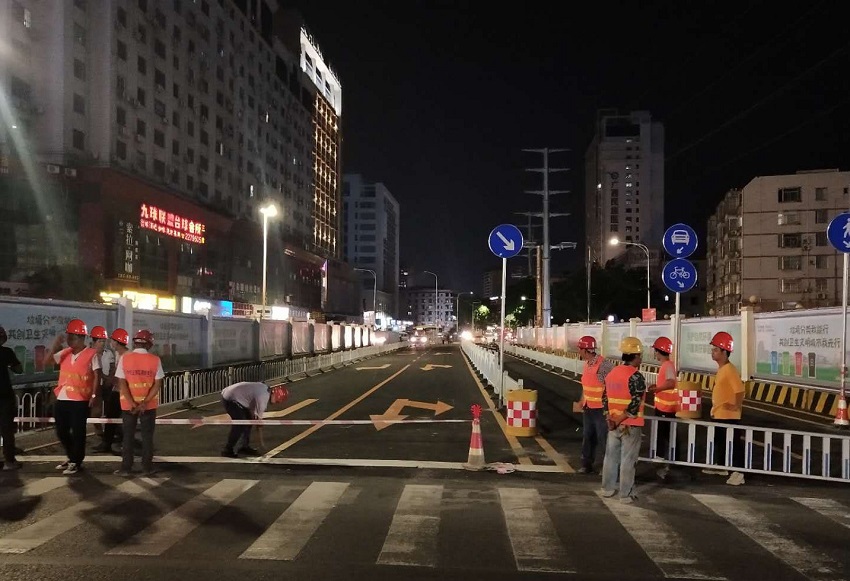 7月1日晚,南寧地鐵5號線北湖南路站西段二期交通疏解順利完成。