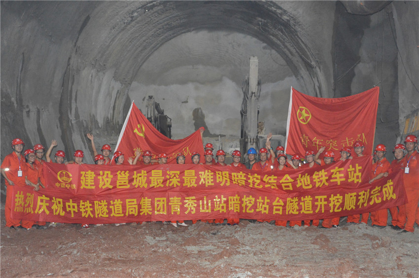 ▲南寧地鐵3號(hào)線青秀山站暗挖站臺(tái)隧道順利完成開挖