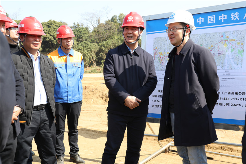 1月13日,橫縣縣委書記黃海韜到南橫高速公路項(xiàng)目第一合同標(biāo)段檢查指導(dǎo)工作。