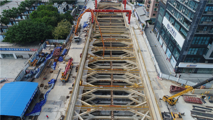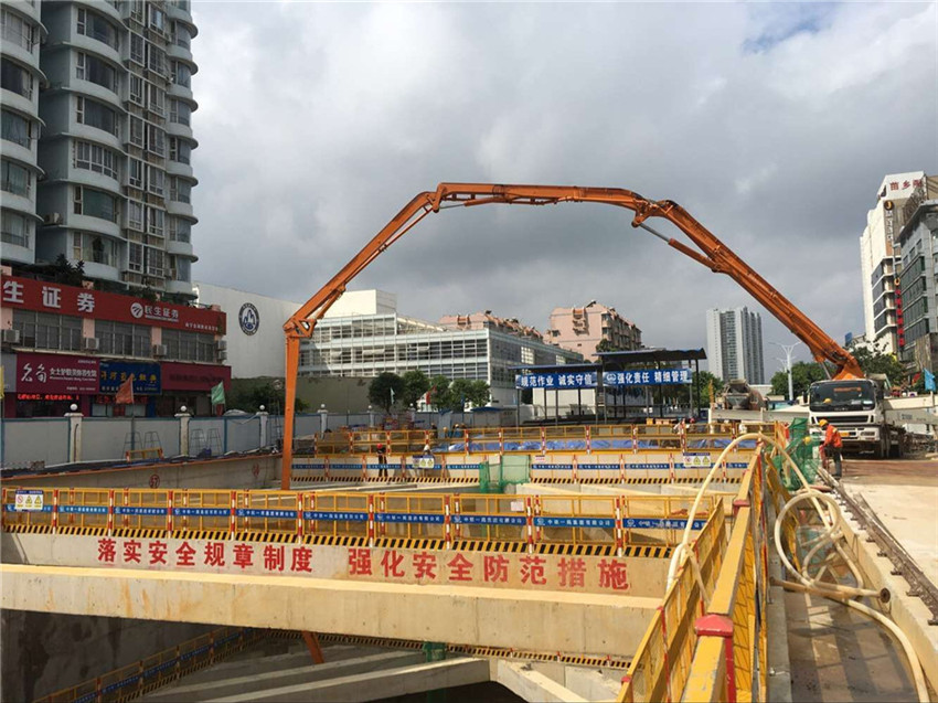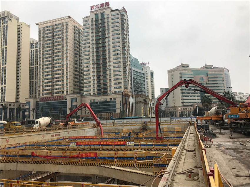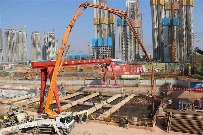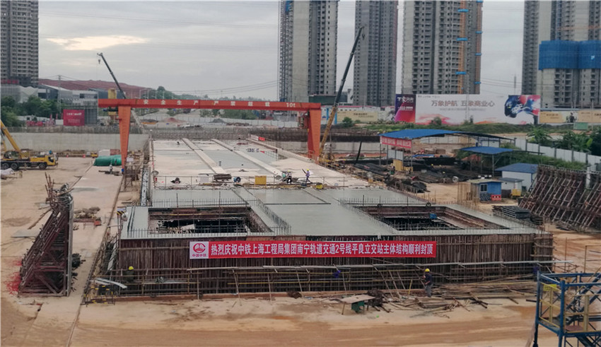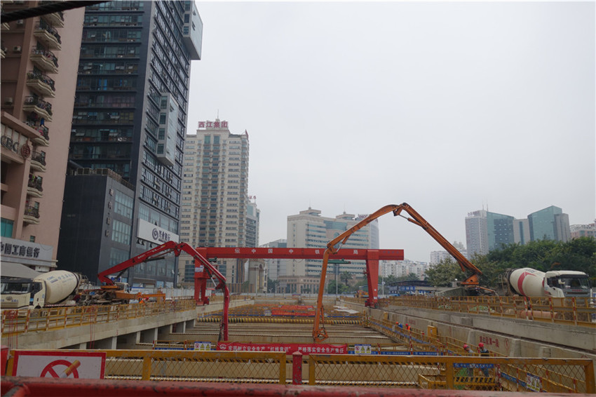 青秀山站明挖站廳底板第一塊砼澆筑完成