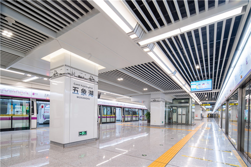 南寧市軌道交通3號線以“錦繡紫”為線路主色調,列車車體側面采用紫色腰帶貫穿列車,與線路主色調相呼應,如同一幅秀美的壯錦。3號線串聯南寧西鄉塘區、興寧區、青秀區、五象新區等4大城區,是重點聯系江北與江南、五象新區之間的骨干線,也是城市軌道交通“井”字網骨架最重要的一縱。