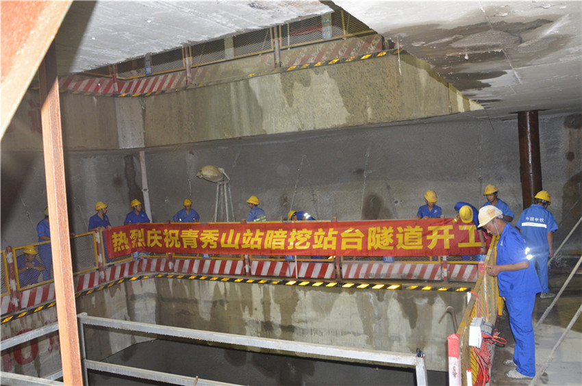 青秀山站,是南寧地鐵建設難度最大、風險最高的車站,也是目前國內同類型車站中施工技術難度、組織難度最大的車站之一,在施工過程中采用“明暗挖同步施工”,以“先正線后平通、先開挖后襯砌、先襯砌后斜通”為原則有序組織施工,控制多節點立體交叉隧道的高風險性。
