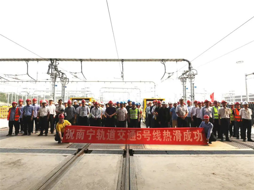 南寧地鐵5號線為南寧首條全自動駕駛線路,是聯(lián)系南寧市西南—東北方向的骨干線,線路南起經(jīng)開區(qū)國凱大道,北至興寧區(qū)金橋客運站,全長20.2公里,共設(shè)車站17座,其中換乘站6座,均為地下線。此次熱滑試驗圓滿完成,標志著南寧地鐵5號線將進入到列車上線調(diào)試階段,為全面開展綜合聯(lián)調(diào)奠定了堅實基礎(chǔ)。指揮部將繼續(xù)堅持“創(chuàng)新創(chuàng)效 優(yōu)質(zhì)發(fā)展”的企業(yè)宗旨,發(fā)揚“開路先鋒”的鐵軍精神,不斷強化安全質(zhì)量、文明施工管控力度,集中資源精力向保通車目標發(fā)起沖鋒。