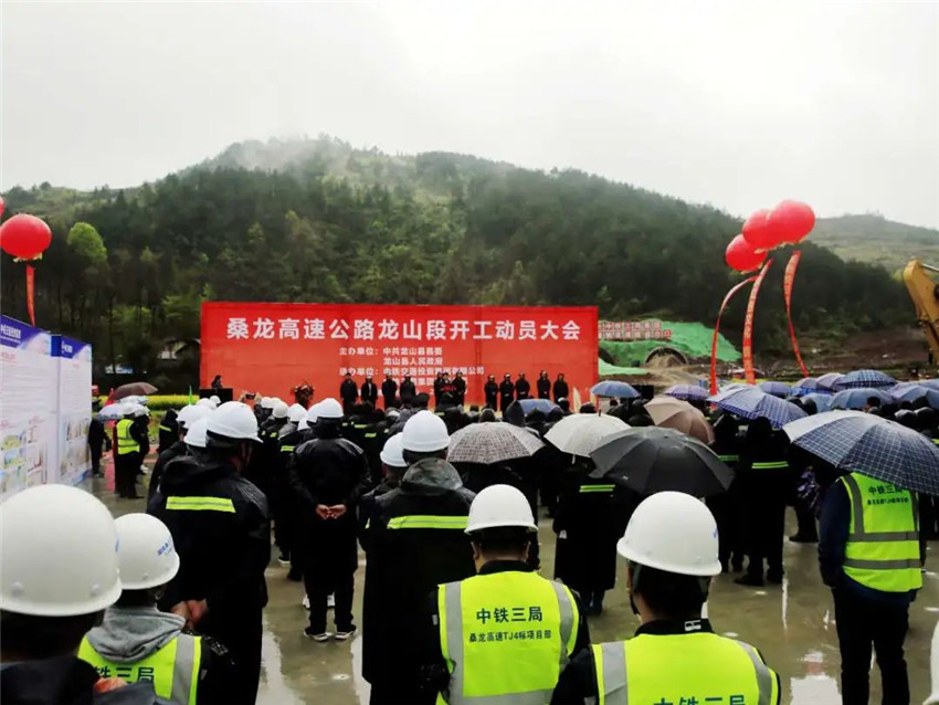 3月30日,桑龍高速公路龍山段項(xiàng)目開(kāi)工動(dòng)員大會(huì)在龍山縣茨巖塘鎮(zhèn)甘露村姚家埡隧道出口舉行。龍山縣委書(shū)記劉冬生、縣長(zhǎng)時(shí)榮芬及相關(guān)縣級(jí)領(lǐng)導(dǎo)、州縣直相關(guān)單位負(fù)責(zé)人、沿線鄉(xiāng)鎮(zhèn)干部群眾代表、中國(guó)中鐵建設(shè)者代表,共計(jì)240余人參加開(kāi)工動(dòng)員大會(huì)。