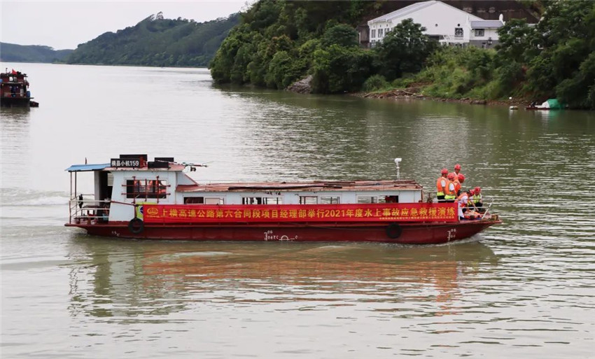 通過前期的細(xì)致謀劃和精心準(zhǔn)備,演練模擬西津郁江特大橋的鋼棧橋臨邊護(hù)欄拆除作業(yè)時(shí),由于江面突刮大風(fēng)導(dǎo)致一名作業(yè)人員不慎跌落江中。事故發(fā)生后,現(xiàn)場人員立即將情況報(bào)告現(xiàn)場負(fù)責(zé)人,現(xiàn)場負(fù)責(zé)人立即上報(bào)項(xiàng)目部;項(xiàng)目部接到報(bào)告后,立即啟動(dòng)專項(xiàng)應(yīng)急預(yù)案并按規(guī)定將事故逐級(jí)上報(bào)。上橫項(xiàng)目分級(jí)響應(yīng)后派員奔赴現(xiàn)場,會(huì)同項(xiàng)目部針對(duì)現(xiàn)場情況科學(xué)制訂救援方案、有效開展現(xiàn)場處置、及時(shí)救助落水人員,并有序作善后處理。