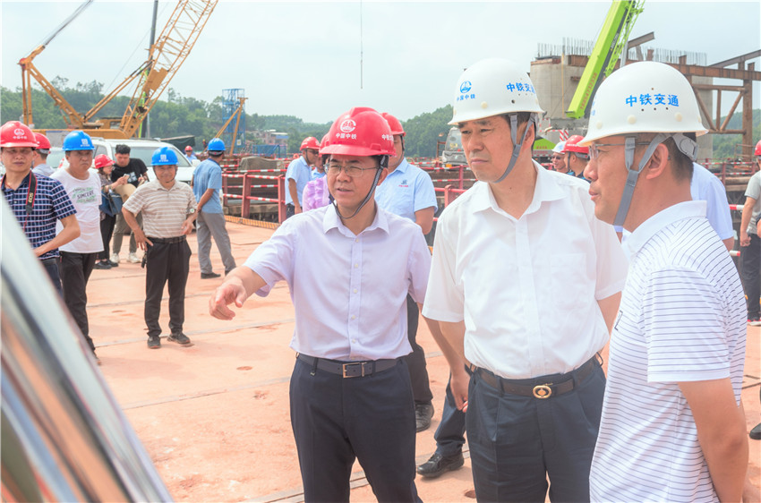 廣西壯族自治區政協副主席錢學明到項目控制性工程魯塘江大橋施工現場,詳細了解魯塘江大橋的工程概況、施工進度、施工重難點、施工管理亮點等情況,并在項目公司駐地組織召開了專題座談會,進一步統一了項目推進相關意見。
