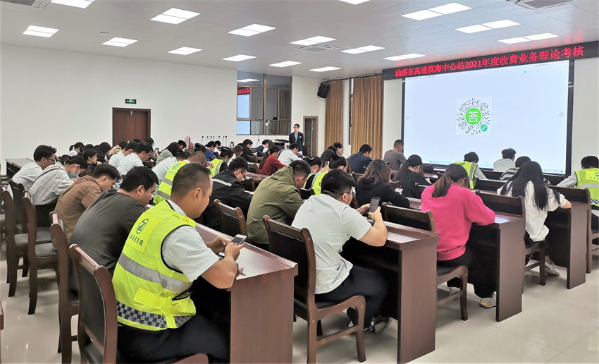 為進一步提高收費人員業務水平,11月上旬,汕揭項目組織開展了收費業務理論考核,考核利用“題答答”手機小程序,題目來自廣東省收費員業務技能競賽題庫,現場共101人參加考核,其中15名收費員獲得滿分。