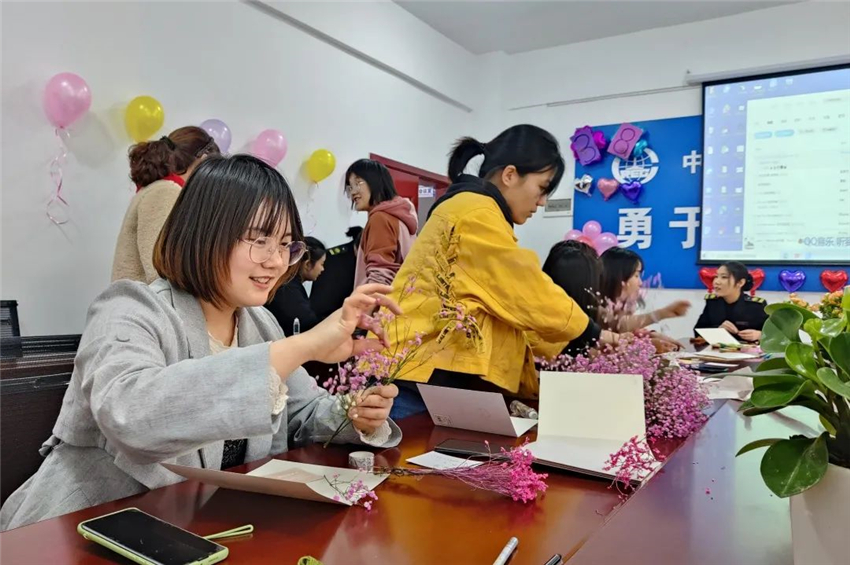 南寧地鐵5號(hào)線工會(huì)工委以“享悅時(shí)光,韻優(yōu)雅女性”為主題開(kāi)展慶祝“三八”婦女節(jié)活動(dòng),組織全體女職工開(kāi)展花藝DIY及形象提升培訓(xùn),向廣大女職工送上節(jié)日祝福,讓廣大女職工在活動(dòng)中感受到獨(dú)立、自信和優(yōu)雅的自己,度過(guò)了一個(gè)美麗和諧、快樂(lè)溫馨的節(jié)日。